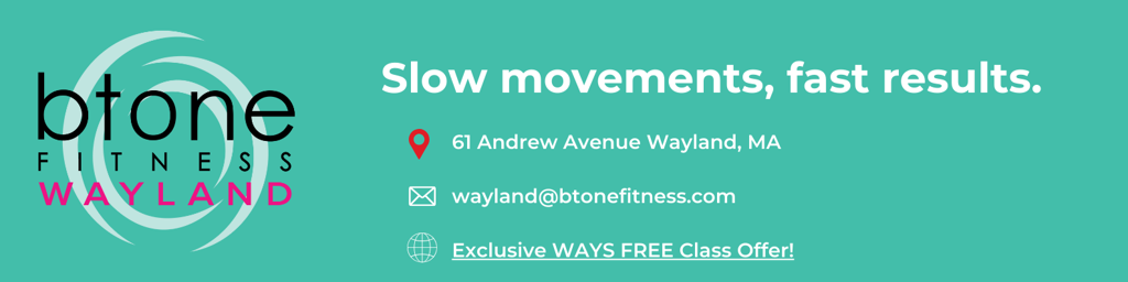 btone Fitness, located in the Wayland Town Center and owned by a Wayland soccer mom, Suzanne Thornfeldt, offers a distinctive workout method that seamlessly blends elements of resistance training, yoga, and Pilates to deliver an efficient, full-body workout. "Slow Movements, Fast Results," isn't just a catchprase, it's their ethos. Experience a 45 minute whole body, core centric, low impact workout right in your hometown.